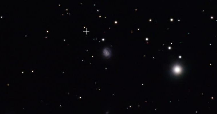 For now, I’ll just post up one additional closeup. In the center is a surprisingly clear galaxy Z 159-39 about 200 million light years distant according to the Simbad database.