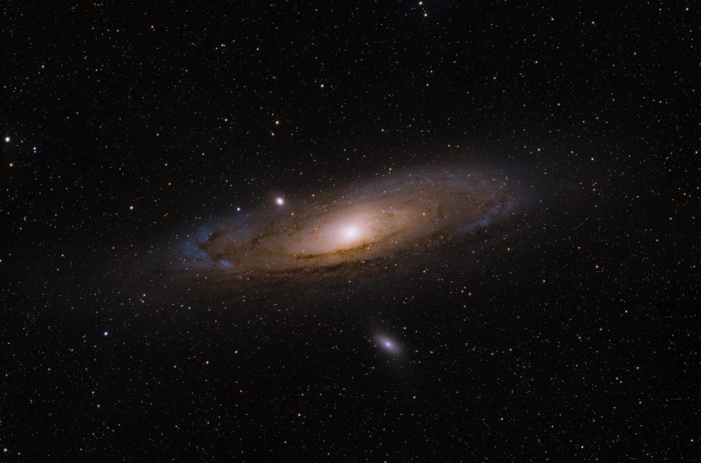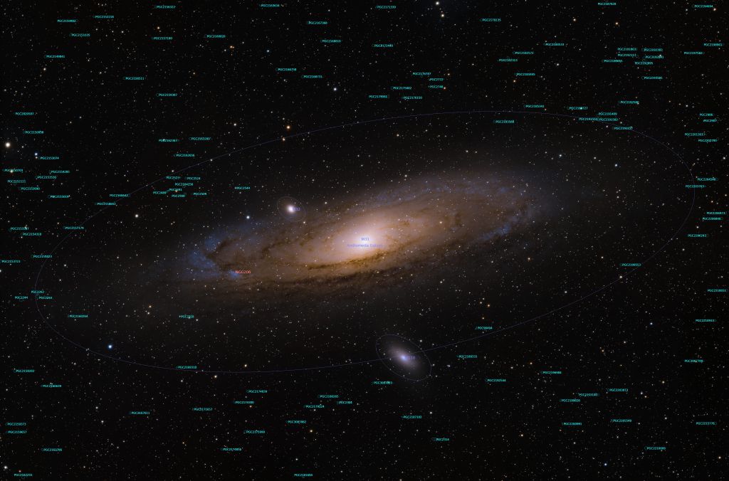 In addition to the companion galaxies M32 and M110, there are a surprisingly large number of addtional faint galaxies. Many are either not visible or cover only a few pixels.