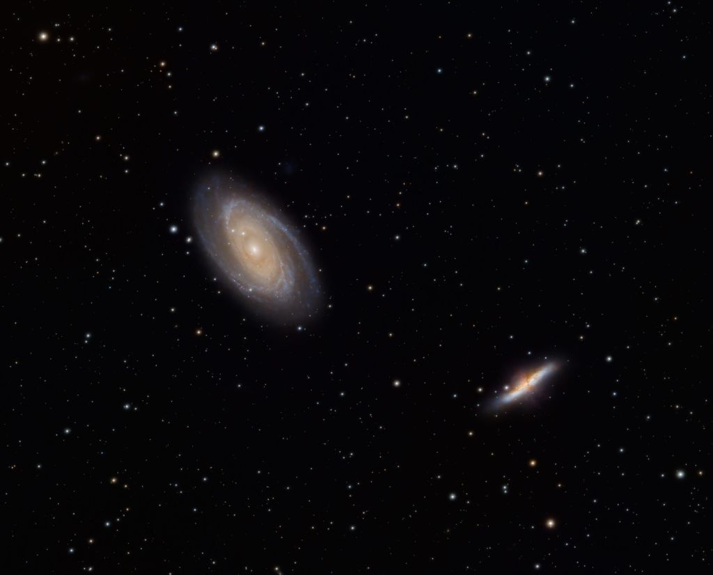 M81 or Bode’s Galaxy and M82 or the Cigar Galaxy are a pair of interacting galaxies sometimes referred to as Bode’s Nebula, and are approximately 12M light years from earth. This pair galaxies were the first galaxies I was able to find visually with a telescope several years ago, so I always enjoy going back to both photograph and observe them visually.