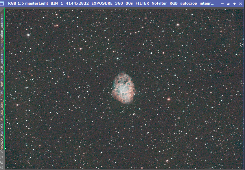 I use Weighted Batch Pre-Processing script with the default values. I’ll work the example of the Crab Nebula. I’ll share the raw files as well as the stacked master in case anyone wants to follow along with the same data in my Google Drive.